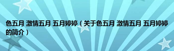 本文關于色五月 激情五月 五月婷婷的簡介就講解完畢,希望對大家有所幫助。