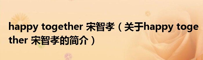 本文關于happy together 宋智孝的簡介就講解完畢,希望對大家有所幫助。