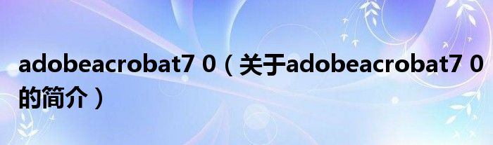 大家好,adobeacrobat7 0,關于adobeacrobat7 0的簡介很多人還不知道,現在讓我們一起來看看吧!