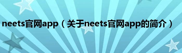 本文關(guān)于neets官網(wǎng)app的簡介就講解完畢,希望對大家有所幫助。