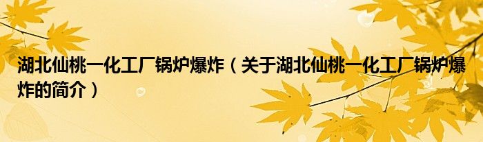 本文關(guān)于湖北仙桃一化工廠鍋爐爆炸的簡介就講解完畢,希望對(duì)大家有所幫助。