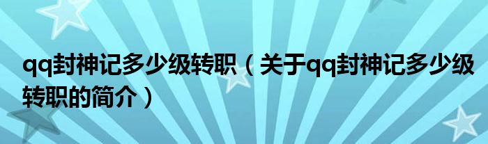 本文關(guān)于qq封神記多少級轉(zhuǎn)職的簡介就講解完畢,希望對大家有所幫助。