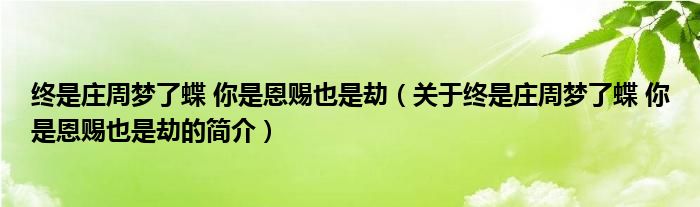 大家好,終是莊周夢了蝶 你是恩賜也是劫,關于終是莊周夢了蝶 你是恩賜也是劫的簡介很多人還不知道,現在讓我們一起來看看吧!
