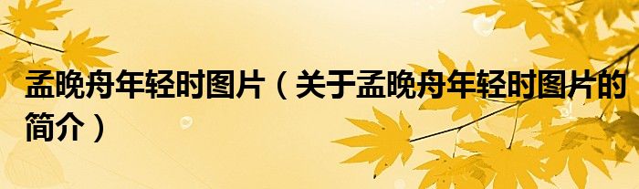 本文關于孟晚舟年輕時圖片的簡介就講解完畢,希望對大家有所幫助。