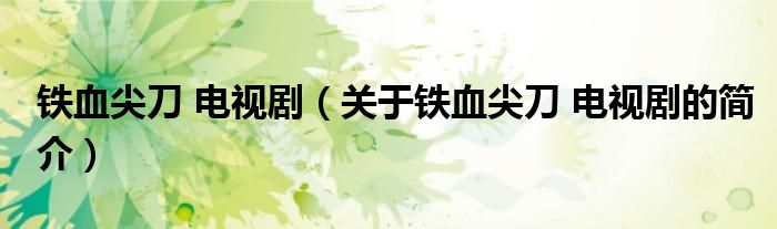 大家好,鐵血尖刀 電視劇,關于鐵血尖刀 電視劇的簡介很多人還不知道,現在讓我們一起來看看吧!