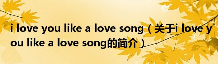 本文關(guān)于i love you like a love song的簡(jiǎn)介就講解完畢,希望對(duì)大家有所幫助。