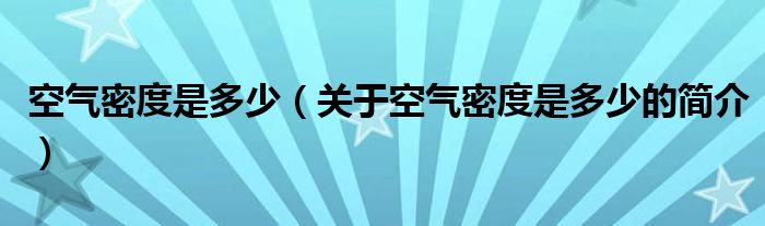 本文關于空氣密度是多少的簡介就講解完畢,希望對大家有所幫助。