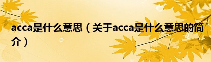 本文關于acca是什么意思的簡介就講解完畢,希望對大家有所幫助。