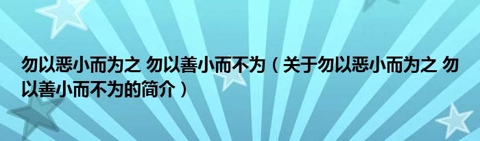 本文關于勿以惡小而為之 勿以善小而不為的簡介就講解完畢,希望對大家有所幫助。