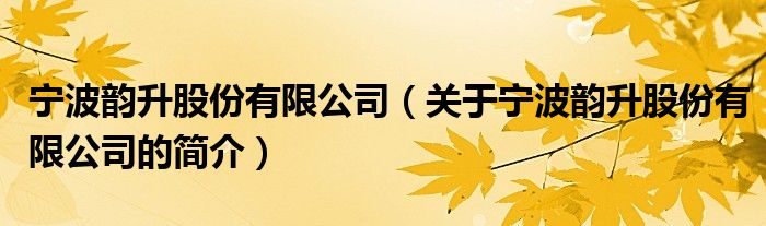 本文關于寧波韻升股份有限公司的簡介就講解完畢,希望對大家有所幫助。