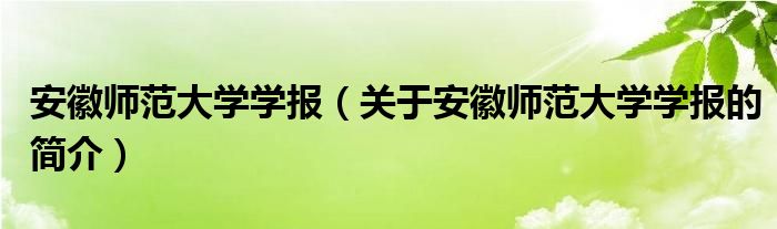 本文關于安徽師范大學學報的簡介就講解完畢,希望對大家有所幫助。