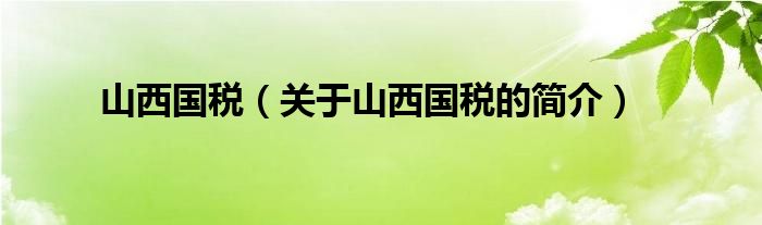 本文關(guān)于山西國(guó)稅的簡(jiǎn)介就講解完畢,希望對(duì)大家有所幫助。
