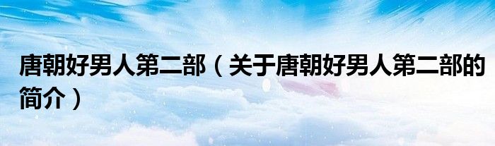 本文關于唐朝好男人第二部的簡介就講解完畢,希望對大家有所幫助。