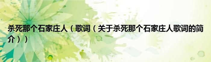 大家好,殺死那個石家莊人 歌詞,關于殺死那個石家莊人 歌詞的簡介很多人還不知道,現在讓我們一起來看看吧!