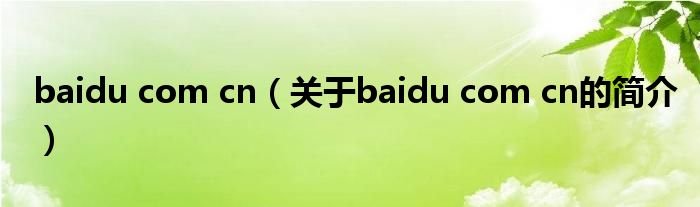 本文關(guān)于baidu com cn的簡介就講解完畢,希望對大家有所幫助。
