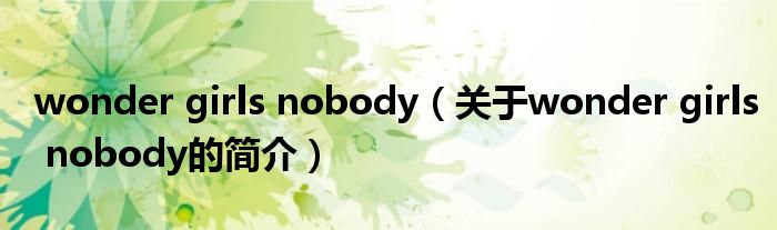 大家好,wonder girls nobody,關于wonder girls nobody的簡介很多人還不知道,現在讓我們一起來看看吧!