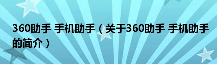 大家好,360助手 手機助手,關于360助手 手機助手的簡介很多人還不知道,現在讓我們一起來看看吧!