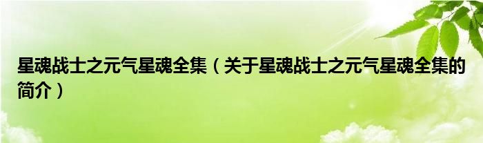 本文關于星魂戰士之元氣星魂全集的簡介就講解完畢,希望對大家有所幫助。