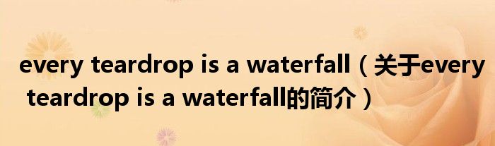 大家好,every teardrop is a waterfall,關于every teardrop is a waterfall的簡介很多人還不知道,現(xiàn)在讓我們一起來看看吧!