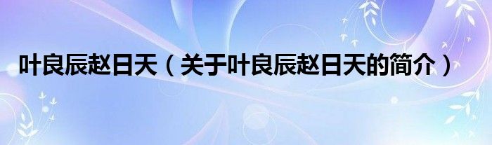 大家好,葉良辰趙日天,關于葉良辰趙日天的簡介很多人還不知道,現在讓我們一起來看看吧!