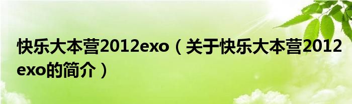 大家好,快樂大本營2012exo,關于快樂大本營2012exo的簡介很多人還不知道,現在讓我們一起來看看吧!