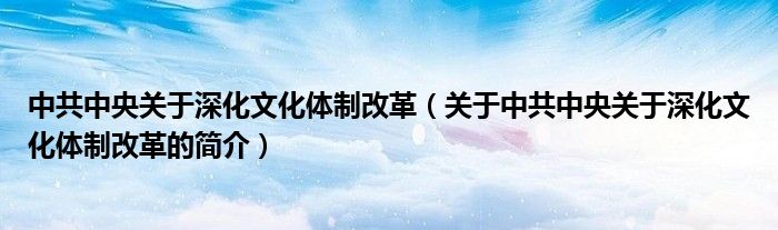 本文關于中共中央關于深化文化體制改革的簡介就講解完畢,希望對大家有所幫助。