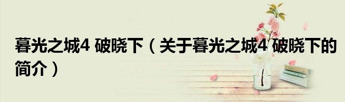 本文關(guān)于暮光之城4 破曉下的簡(jiǎn)介就講解完畢,希望對(duì)大家有所幫助。