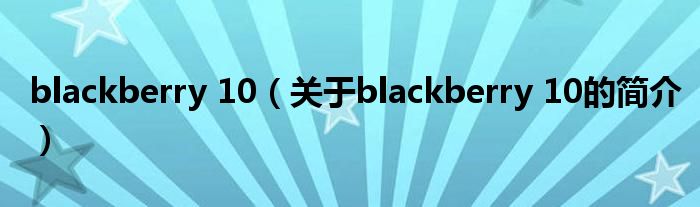 大家好,blackberry 10,關于blackberry 10的簡介很多人還不知道,現在讓我們一起來看看吧!