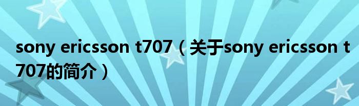 大家好,sony ericsson t707,關于sony ericsson t707的簡介很多人還不知道,現在讓我們一起來看看吧!