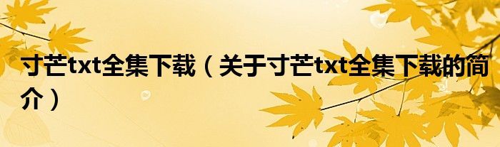 本文關于寸芒txt全集下載的簡介就講解完畢,希望對大家有所幫助。