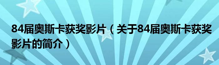 本文關于84屆奧斯卡獲獎影片的簡介就講解完畢,希望對大家有所幫助。