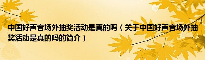 本文關于中國好聲音場外抽獎活動是真的嗎的簡介就講解完畢,希望對大家有所幫助。
