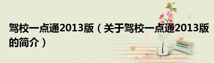 本文關(guān)于駕校一點通2013版的簡介就講解完畢,希望對大家有所幫助。