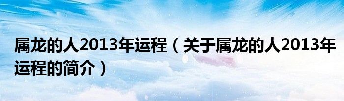 本文關(guān)于屬龍的人2013年運(yùn)程的簡(jiǎn)介就講解完畢,希望對(duì)大家有所幫助。