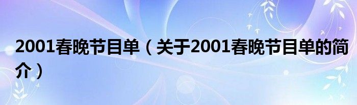 本文關(guān)于2001春晚節(jié)目單的簡介就講解完畢,希望對大家有所幫助。