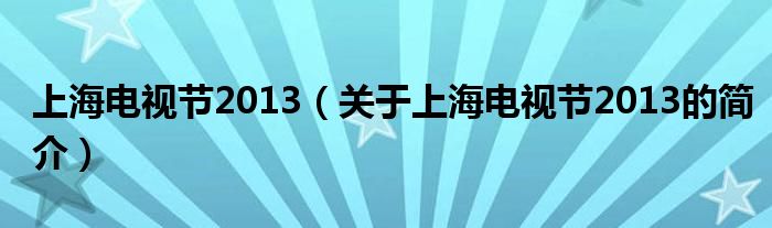 本文關于上海電視節2013的簡介就講解完畢,希望對大家有所幫助。