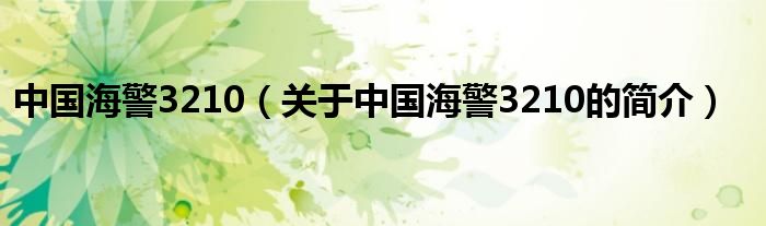 大家好,中國海警3210,關于中國海警3210的簡介很多人還不知道,現(xiàn)在讓我們一起來看看吧!