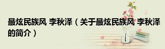 本文關于最炫民族風 李秋澤的簡介就講解完畢,希望對大家有所幫助。