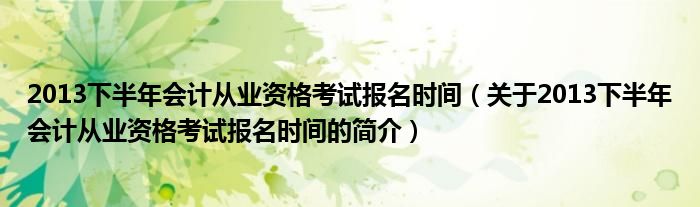 本文關于2013下半年會計從業資格考試報名時間的簡介就講解完畢,希望對大家有所幫助。
