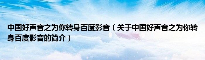 本文關(guān)于中國好聲音之為你轉(zhuǎn)身百度影音的簡介就講解完畢,希望對大家有所幫助。
