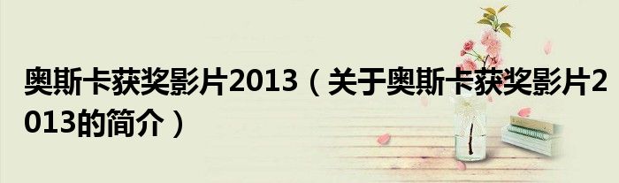 大家好,奧斯卡獲獎影片2013,關于奧斯卡獲獎影片2013的簡介很多人還不知道,現在讓我們一起來看看吧!