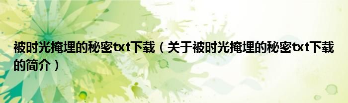 本文關于被時光掩埋的秘密txt下載的簡介就講解完畢,希望對大家有所幫助。