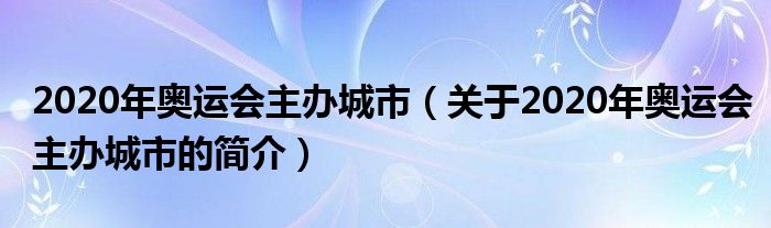 本文關(guān)于2020年奧運會主辦城市的簡介就講解完畢,希望對大家有所幫助。