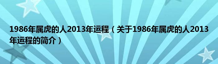 本文關于1986年屬虎的人2013年運程的簡介就講解完畢,希望對大家有所幫助。