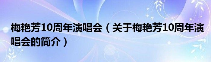 本文關(guān)于梅艷芳10周年演唱會(huì)的簡(jiǎn)介就講解完畢,希望對(duì)大家有所幫助。
