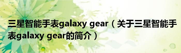 本文關于三星智能手表galaxy gear的簡介就講解完畢,希望對大家有所幫助。