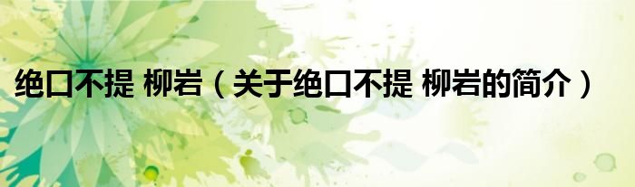 本文關于絕口不提 柳巖的簡介就講解完畢,希望對大家有所幫助。