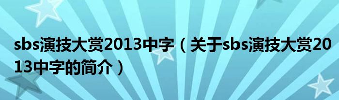 本文關于sbs演技大賞2013中字的簡介就講解完畢,希望對大家有所幫助。