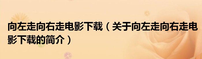 本文關于向左走向右走電影下載的簡介就講解完畢,希望對大家有所幫助。
