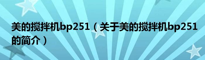 本文關于美的攪拌機bp251的簡介就講解完畢,希望對大家有所幫助。